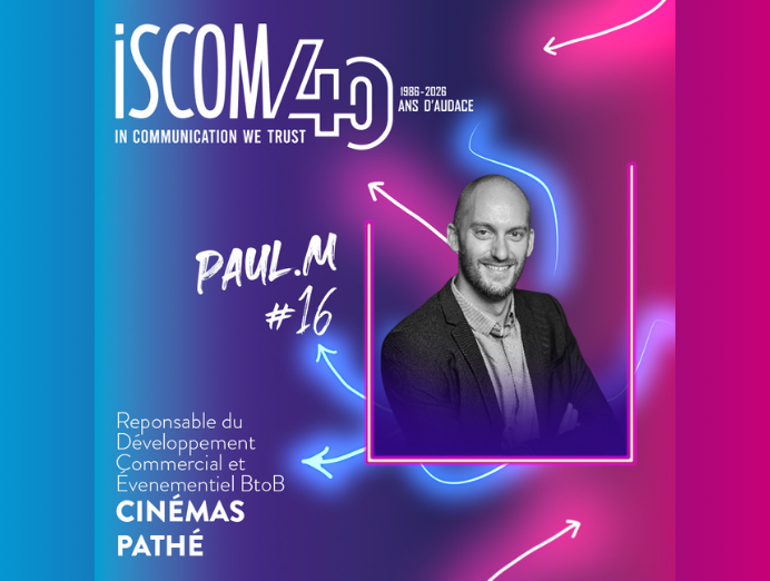 Portrait de Paul Mouisse, Responsable événementiel BtoB sur les cinémas Pathé Toulouse et diplômé en 2009. À l’occasion de ses 40 ans, l’ ISCOM, école de communication, célèbre celles et ceux qui incarnent son expertise et son rayonnement à travers le monde : ses anciens étudiants.