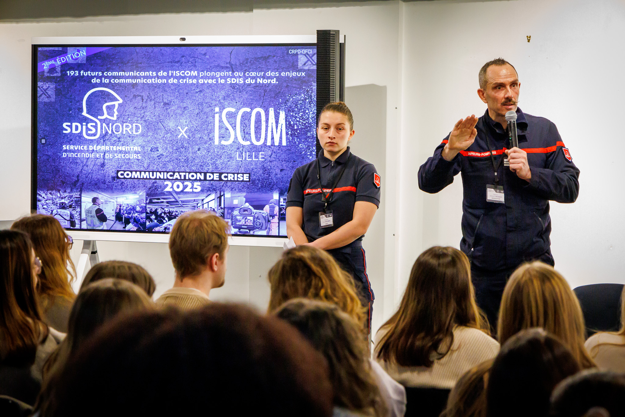 Les étudiants de 4ème année à l'ISCOM Lille ont eu l'opportunité de vivre une expérience unique en travaillant aux côtés des pompiers du SDIS (Service Départemental d'Incendie et de Secours) du Nord dans le cadre d'un challenge intensif. Cette collaboration, alliant communication de crise et gestion des relations publiques, a permis aux futurs professionnels de la communication de se confronter à des situations de crise concrètes, dans un environnement où la réactivité et l'efficacité sont primordiales.