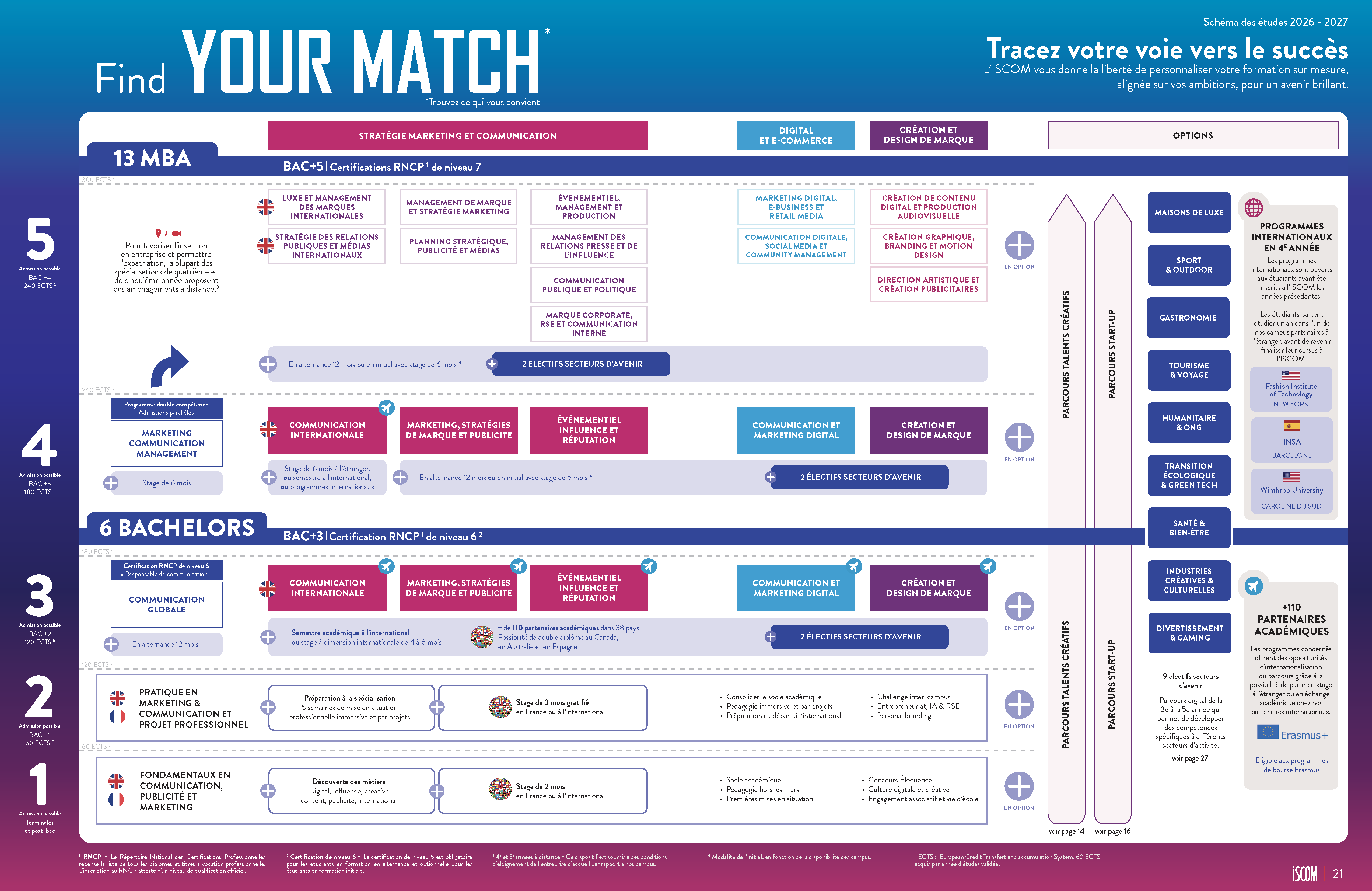 Le Programme Grande École offre une formation de 5 ans aux métiers de la communication, du marketing, de la création publicitaire et de l'influence. Notre approche est étroitement alignée sur les besoins des entreprises, permettant aux étudiants d'évoluer en parfaite adéquation avec leurs attentes.